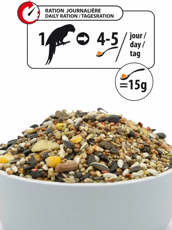La nourriture Aimé Nutri’Balance Expert Repas Premium Aliment Complet pour Perroquet a été spécialement élaboré sous contrôle vétérinaires pour répondre quotidiennement aux besoins nutritionnels spécifiques des perroquets.