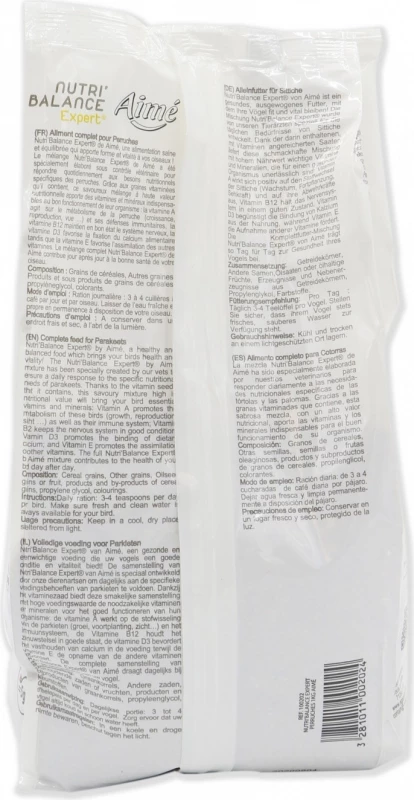 Le mélange complet Nutri’Balance Expert® de Aimé contribue à couvrir les besoins nutritionnels et à la bonne santé de votre oiseau.