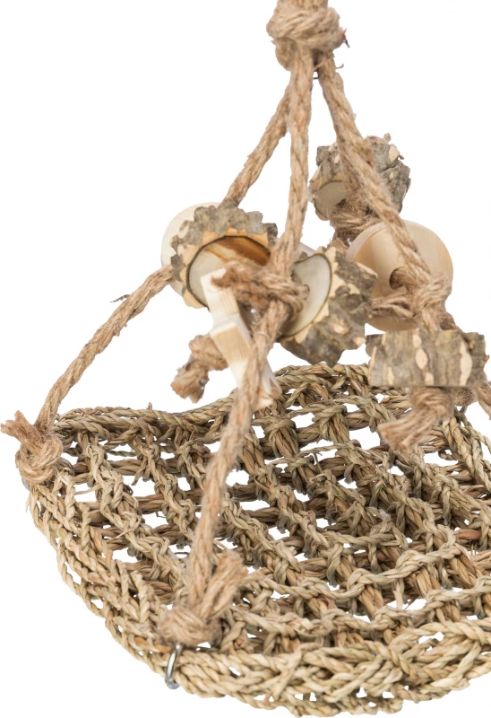 La Balançoire en algues de la marque Trixie est un accessoire indispensable pour la cage de votre oiseau. Elle conviendra parfaitement pour les canaris et les perruches mais peut également convenir aux petits rongeurs. Cette balançoire est fabriquée à base de matériaux naturels, composés d’algues et de bois. Idéal pour s’accrocher, grimper et grignoter ! Il est important de lui offrir de nombreux enrichissement dans sa cage. Les oiseaux sont des animaux curieux et vif qui ont un besoin constant de découvrir de nouvelles choses !