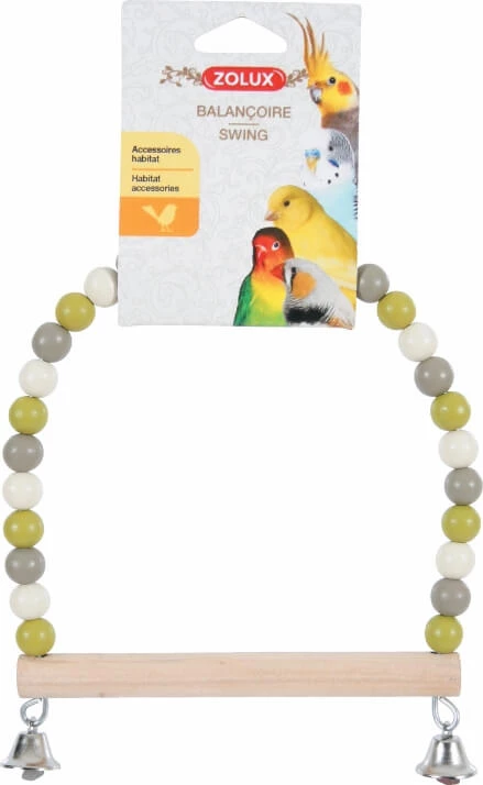 Offrez une Balançoire perle + perchoir bois ludique à votre oiseau pour stimuler son activité mentale ; facile à installer et adaptable sur toutes les cages traditionnelles.