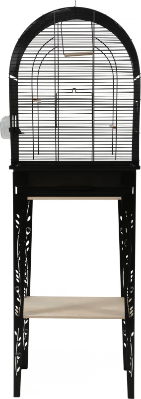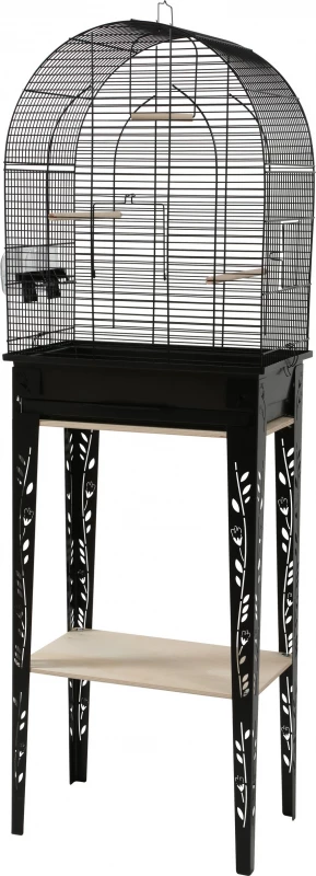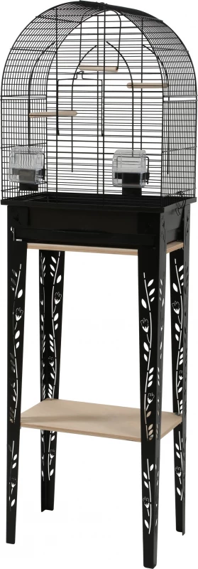 Cette cage design pour oiseaux domestiques est vendue avec le meuble et est très faciles à monter ! La collection Patio propose des cages arrondies conçues dans l’esprit Patio / floral avec 4 pieds en métal décorés (motifs floraux). Le meuble est équipé de deux étagères en bois (une pour le soutien de la cage et une seconde pour du rangement). La cage est équipée de : 2 perchoirs en bois, 1 balançoire en bois et 2 abreuvoirs en plastique. Le nettoyage du bac ne nécessite pas de déplacer la cage, il suffit de simplement retirer le tiroir, le nettoyer et le repositionner.