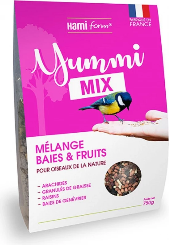 Caractéristiques – HAMIFORM Yummi mix – Mélange aux baies et fruits pour oiseaux du ciel