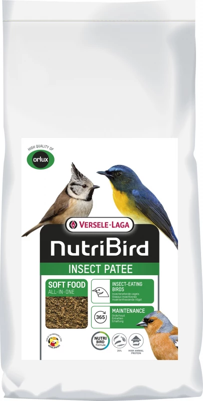 Orlux Insect pâtée est un aliment complémentaire pour les oiseaux exotiques et indigènes, petites et grandes perruches, perroquets, perruches de figuiers et loris. C’est également un aliment complet pour tous les insectivores. Insect pâtée est très riche en protéines animales et insectes séchés, oeufs de fourmis, larves mexicaines, minimum 25 % d’insectes. Grâce à la haute teneur en insectes séchés, cette pâtée convient très bien pour la reproduction des oiseaux indigènes.