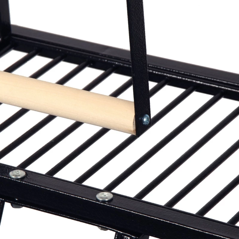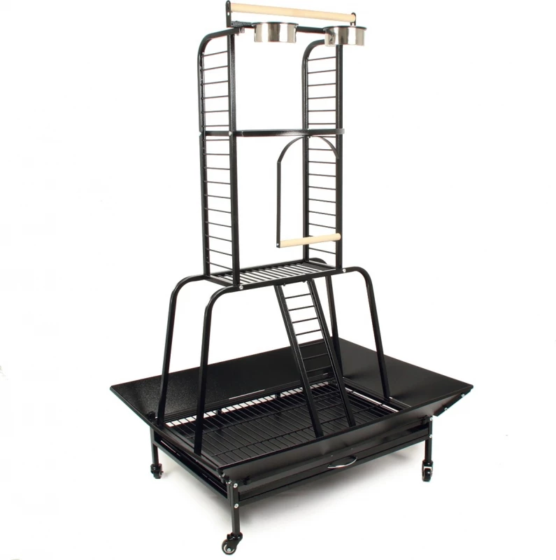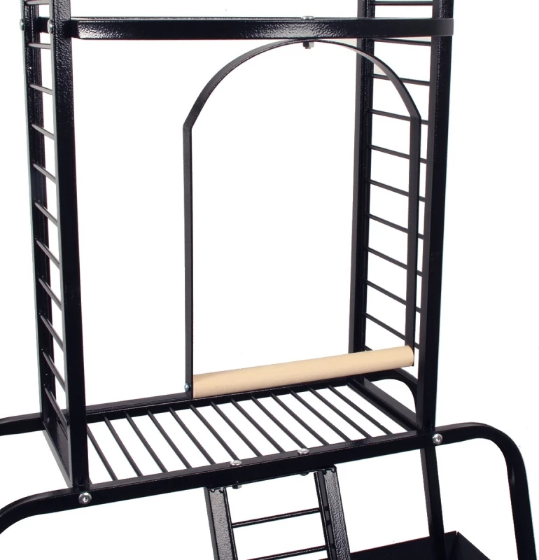 Pour les plus gourmands, après tous les efforts qu’il aura produit pour se hisser tout en haut du perchoir, votre perroquet pourra profiter dans de belles mangeoires en inox de graines de réconfort que vous aurez ajouté au préalable. Montée sur roulettes mais robuste, les accessoires pour cage à perroquets MATI disposent de belles finitions. En acier non toxique et ses perchoirs en pin en font définitivement un bel objet décoratif pour votre pièce. De plus, pour l’hygiène, le perchoir pour perroquet comprend un bac amovible avec grille de fond : vous facilitant le nettoyage de son aire de jeux mais aussi un attrape-graines amovible pour récupérer les coques des graines qu’il aura dévorées.