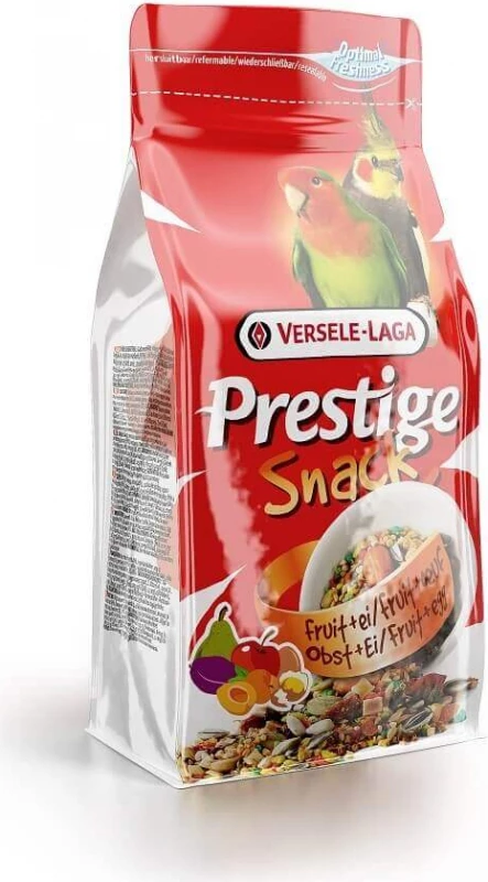 Le Prestige Snack Grandes perruches est un aliment complémentaire pour oiseaux qui va ravir votre grande perruche. C’est un mélange de friandises à base de fruits et d’oeufs. Ce snack renforce la vitalité des perruches et se compose de délicieuses graines enrichies aux vitamines, aux acides aminés et aux minéraux pour une condition physique optimale. Les grandes perruches en raffolent. Vous pouvez donner jusqu’à 25% de la ration alimentaire quotidienne maximum.