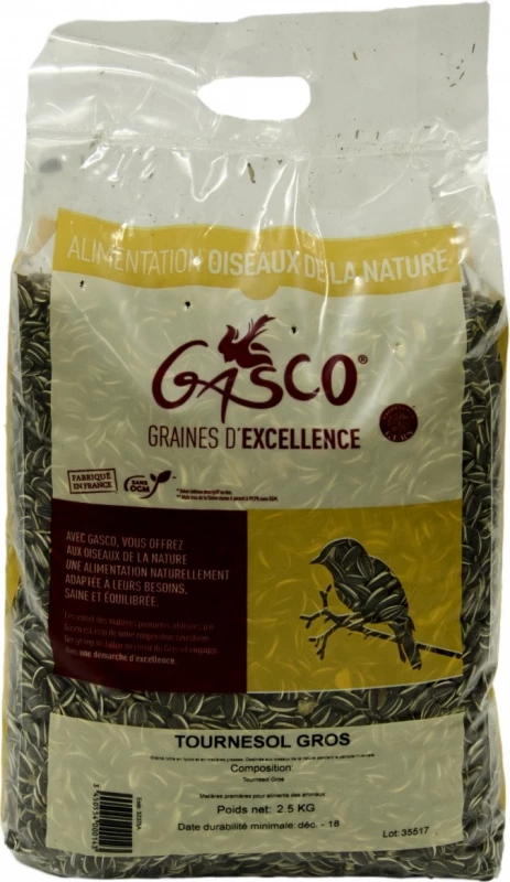 L’aliment Tournesol Gros pour oiseaux du ciel de la marque Gasco répond aux besoins alimentaires des oiseaux et permet de soutenir les oiseaux pendant l’hiver.