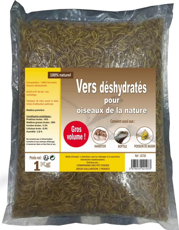 Caractéristiques – Vers de farine déshydratés pour volailles :