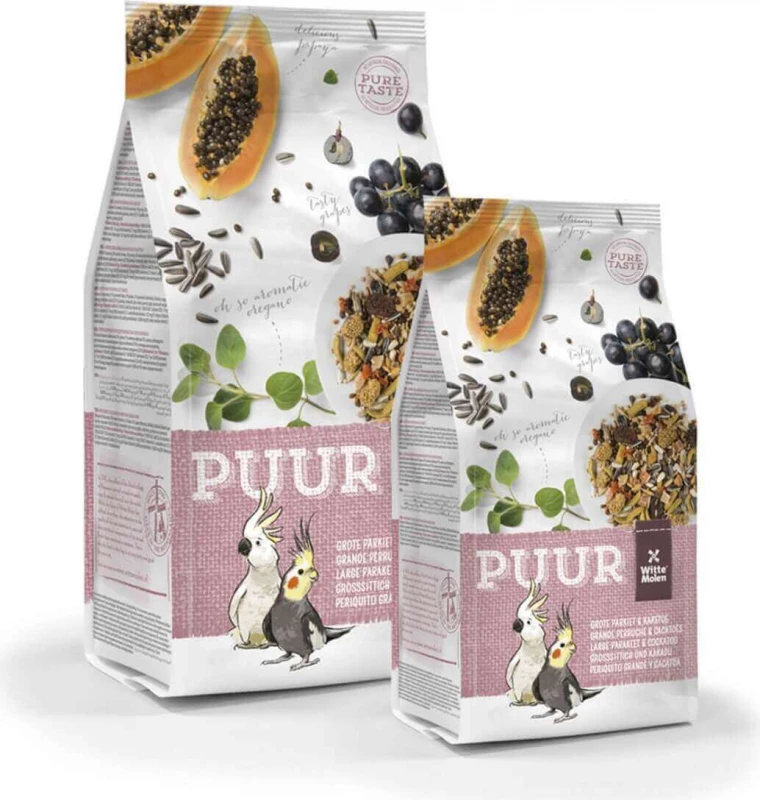 La nourriture Witte Molen Puur Grande Perruche & Cacatoès est un mélange de graines gourmand pur et varié, composé de papaye, graines de tournesol, raisins, origan, œuf et une variété de bons ingrédients. Ces ingrédients spéciaux en font une nourriture spécifiquement adaptés à votre grande perruche ou cacatoès.