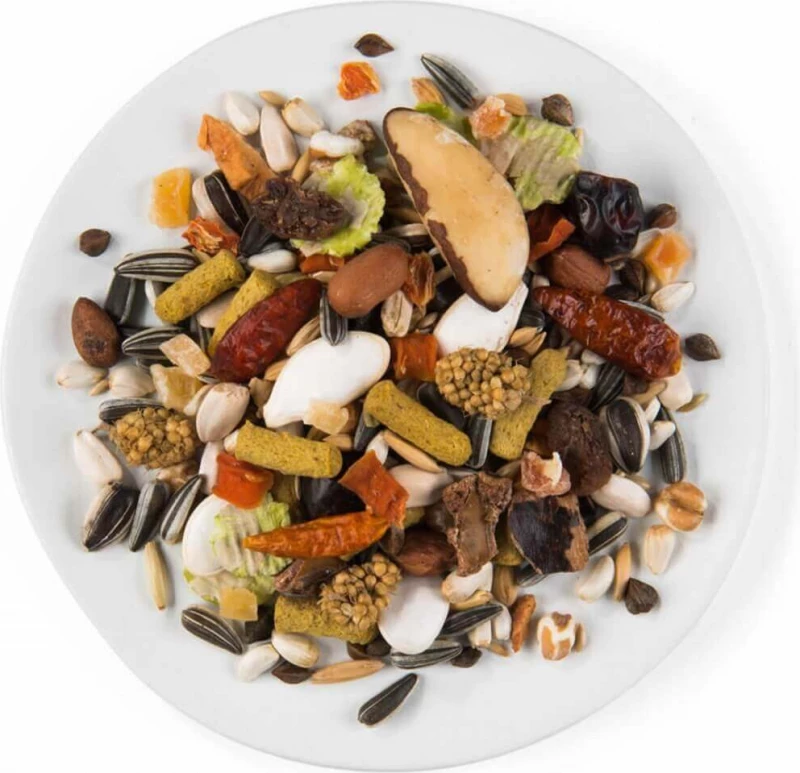 Cet aliment fournit à vos amis à plumes une source complète de protéines, de glucides, de graisses, de vitamines et de minéraux nécessaires à leur santé et à leur bien-être. La composition équilibrée ainsi que les vitamines et oligoéléments ajoutés augmenteront la vitalité de votre perroquet.